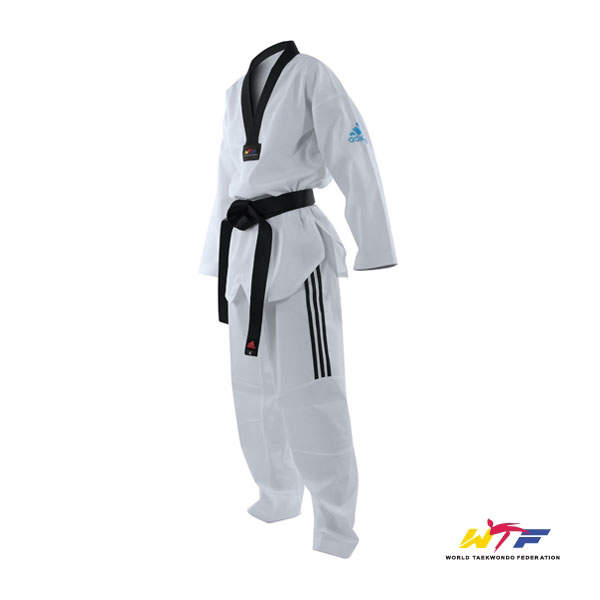 adidas adiZero taekwondo dobok • Super light polyester material with integrated Climacool® net surfaces located on the top area and the back of the pants for optimal ventilation • Top with a V-neck • Elastic waist pants